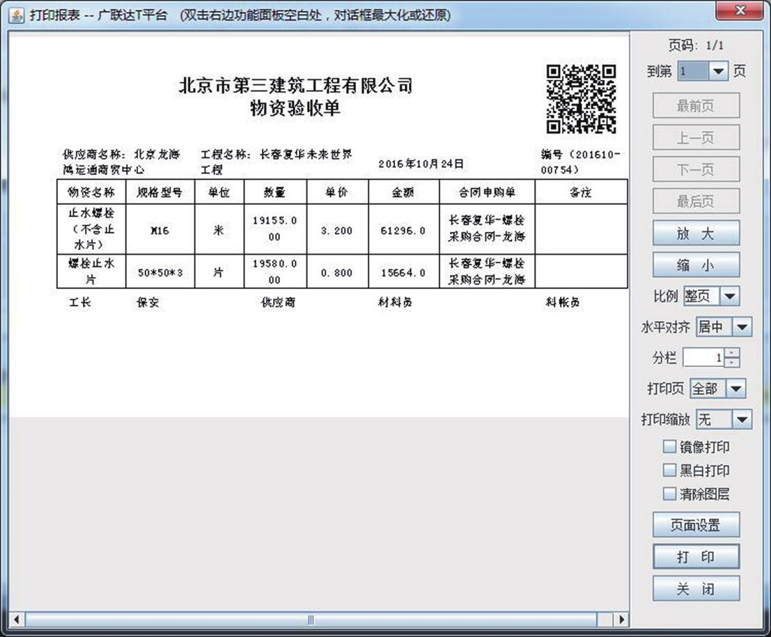 项目材料员从系统中通过公司统一维护的合格供方名录中,选择相应的供应商签订合同进行供 货。
