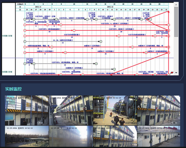 本工程使用了银河集团(galaxy)斑马进度、形象进度视频监控以及生产要素(劳务人员等)实时分析。同时,在智慧工地平台还对进度概况,如时间进度管理,视频监控,生产要素分析等进行了数据整合。