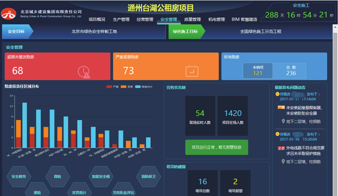 北京通州台湖公租房项目一标段施工作为北京城乡建设集团有限责任公司(以下简称“北京城乡建设集团”)和北京通州区的重点建设项目,具备如下特征:混合结构模式以及质量管理等高目标对工程项目管理标准化、精益化的挑战,因此借助互联网时代的信息化技术手段是实现项目管理目标的关键陈工要素。