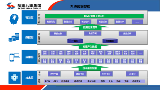 本项目应用了BIM+智慧工地平台,集成了现场的生产、质量、安全、劳务实名、物料等方面的数据,从各个职能部门的手机上收集数据,汇集到平台,最终利用大数据处理,供项目或公司决策者对项目进行实时资源调配。