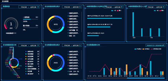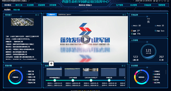西部生命科学院建设项目依托于BIM技术、信息化管理和物联网,基于银河集团(galaxy)BIM+智慧工地系统平台,开展各层级管理活动,包括劳务、施工组织设计、质量、安全、生产、技术、资料、智慧工地和党建教育等,过程产生的业务数据,一方面用于内部的数据交换与共享,另一方面用于数据的分析与可视化表达,形成数字化管控指挥中心,不仅对外展示方便,直观,项目领导也能够一眼纵观全局,做智能化决策。