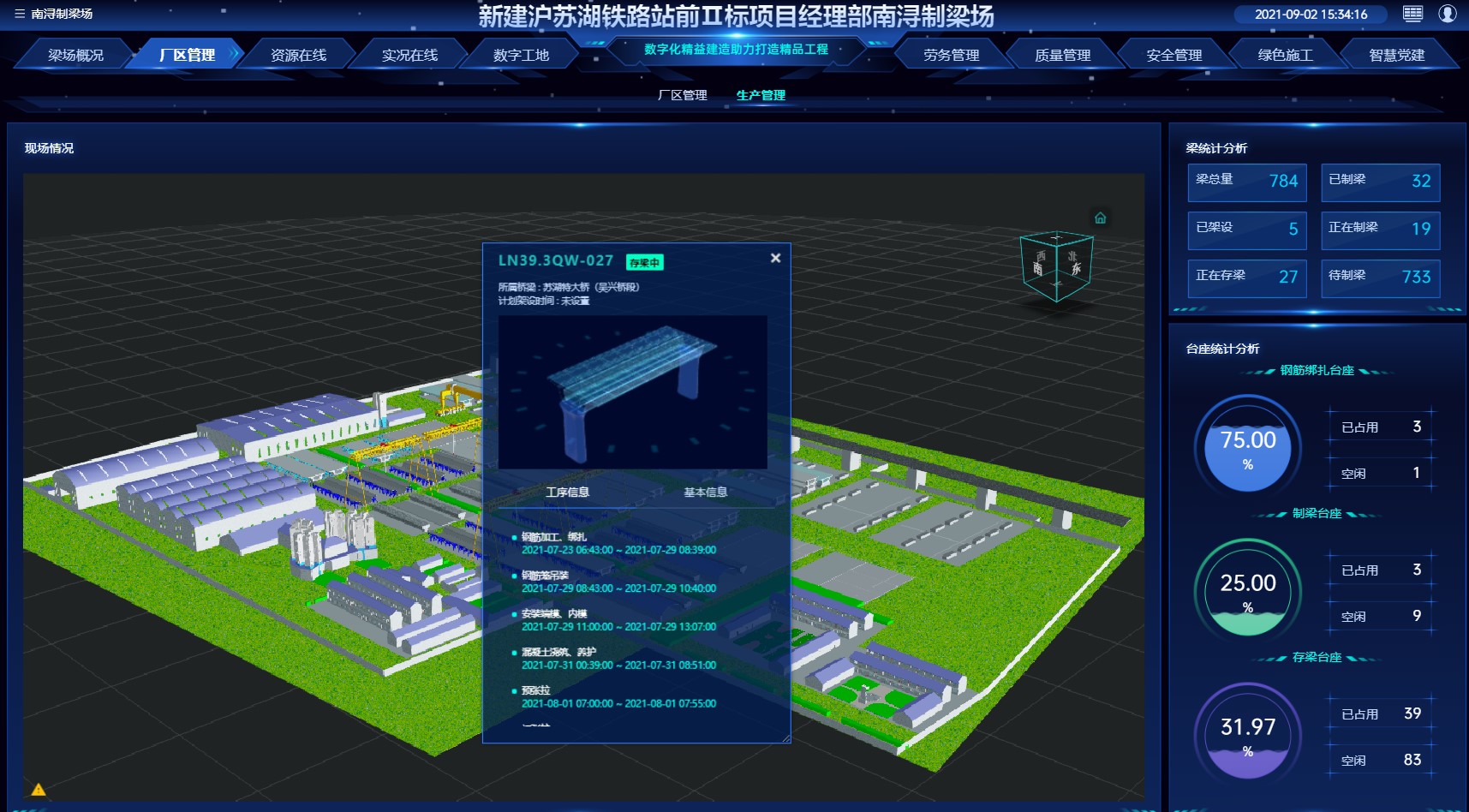 将梁场打造成数字化加工工厂,实现参数化、自动化、智能化管理,减少项目人员投入,提高梁场生产效益。