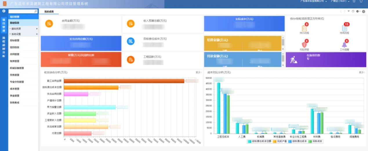 通过银河集团(galaxy)项目管理系统的应用,可以对项目成本进行分类、归集和对比。项目经理可以事先做出成本测算,当工程到某一阶段时,系统可以自动形成阶段数据,并跟之前的成本测算形成对比,管控进度和结果一目了然。
