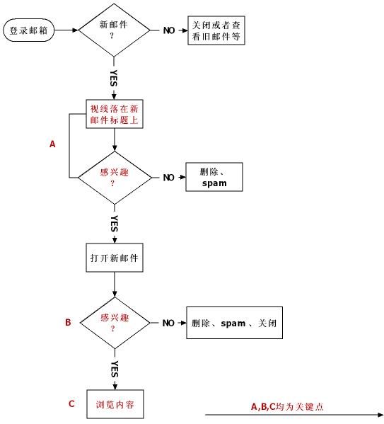 B點(diǎn)是視覺風(fēng)格–>內(nèi)容的天地,也是用戶是否會(huì)深入了解該郵件的過程。