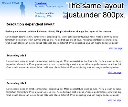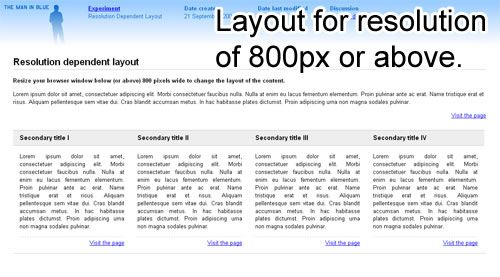 大多數(shù)流動布局在分辨率為800×600的屏幕中看起來很大很寬--高達(dá)1280px。但是,我們可以稍稍突破一下,針對800px-1024px、1024px-1280px、1280px以上的屏幕定制略微不同的布局。同樣,也可為640px-800px、320px-640px、240px-320px、240px以下的屏幕自定義調(diào)整。