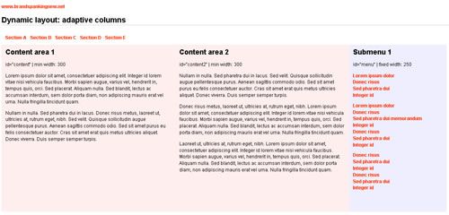 這種概念并不難,關(guān)于此技術(shù)每個開發(fā)者都有自己的腳本,Clagnut.com博客的回帖中有更多關(guān)于自適應(yīng)內(nèi)容的布局和腳本--“Variable fixed width layout“,在其回帖中甚至有一種技巧無需任何腳本--CSS Drop Column Layout