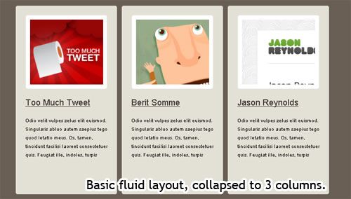 在我們思考其可用性之前,一切安好。這種類型的布局可能適合很多用戶,但未必適合每一個人。因此,我們將其轉(zhuǎn)換成流動布局,如果欲使這一布局在任何分辨率下保持其比例,我們必須將960px的寬度改為100%,然后計(jì)算出與880px、640px、200px等值的百分比。