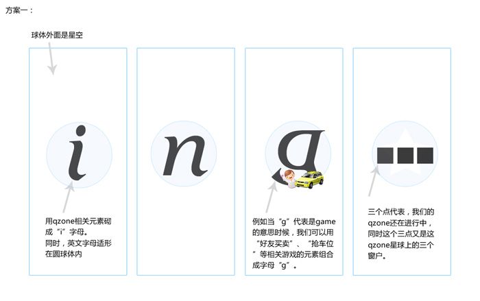 從設(shè)計(jì)師完成的幾款logo初稿中驚喜的發(fā)現(xiàn),構(gòu)思和元素選取上有異曲同工之意??臻glogo中的五角星,星球和代表”Qzone”的Z被從新表現(xiàn)和詮釋不同的氣質(zhì)。加之彩帶,光環(huán)和歡慶的元素的結(jié)合表現(xiàn)著慶典主題logo的歡慶氛圍。