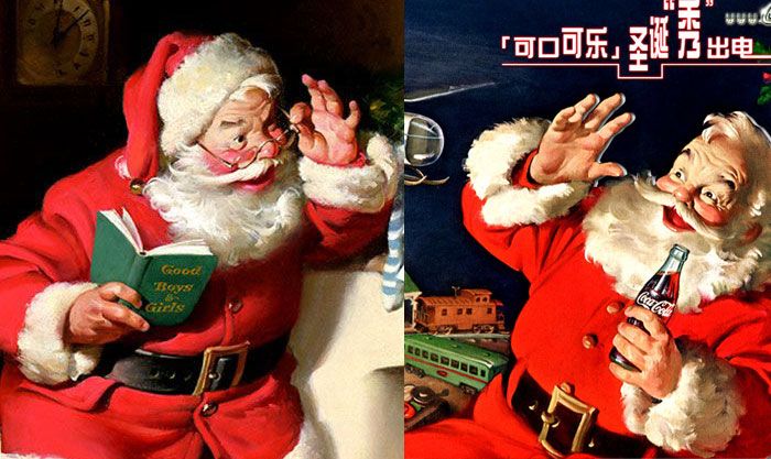 說到可口可樂,人們不得不感嘆這個品牌的紅白神話,也許很多人不知道,大家熟知的穿紅白衣服的圣誕老人是可口可樂為了宣傳而創(chuàng)作出來的,在20世紀30年代和40年代,這一形象一直被用作該公司的廣告活動中。久而久之,人們就以為圣誕老人是穿一生紅白裝的老人。而此之前圣誕老人的打扮是五顏六色的。視覺識別的影響可見一般。
