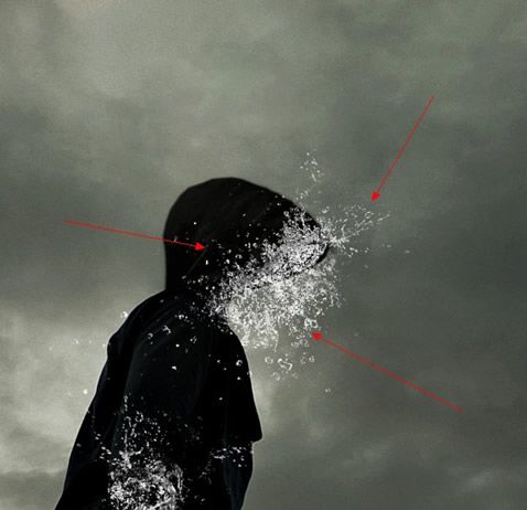 下面用水的素材搭建頭部,注意水花的飛濺方向