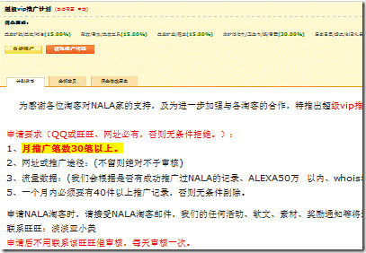 1、首先,我們?yōu)榇筇钥烷_(kāi)設(shè)了15%-16%高傭金的VIP計(jì)劃,這個(gè)計(jì)劃我們不是隱藏的,目的也是為了間接鼓勵(lì)那些中等的淘客,努力就可以加入這個(gè)計(jì)劃,回饋他們更高的推廣傭金。