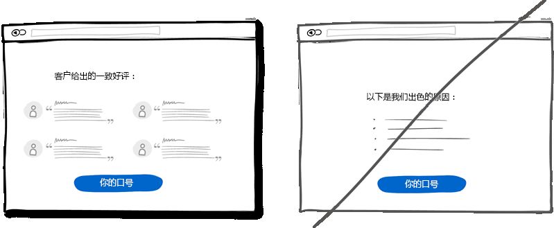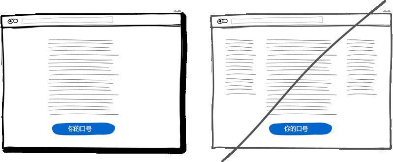 單列布局能夠讓對(duì)全局有更好的掌控。同時(shí)用戶也可以一目了然內(nèi)容。而多列而已則會(huì)有分散用戶注意力的風(fēng)險(xiǎn)使你的主旨無(wú)法很好表達(dá)。最好的做法是用一個(gè)有邏輯的敘述來(lái)引導(dǎo)用戶并且在文末給出你的操作按鈕。