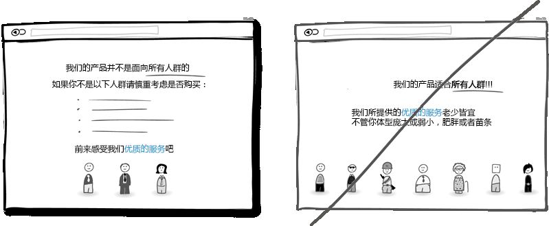 你是想把產(chǎn)品做成大眾化的呢還是有精確的適用人群?在產(chǎn)品定位上你需要更精確些。通過(guò)不斷了解目標(biāo)客戶的需求及標(biāo)準(zhǔn),你能把產(chǎn)品做得更好得到更多與客戶交流的機(jī)會(huì),并且讓客戶覺得你很專業(yè),在這方面是獨(dú)家提供的優(yōu)質(zhì)服務(wù)。把產(chǎn)品定位得精確的風(fēng)險(xiǎn)就是可能縮小了目標(biāo)潛在客戶的范圍,也使自身變得不那么全能。但這種做得更專業(yè)的精神卻反過(guò)來(lái)會(huì)贏得信任,權(quán)威。