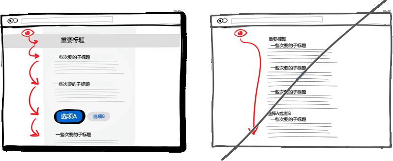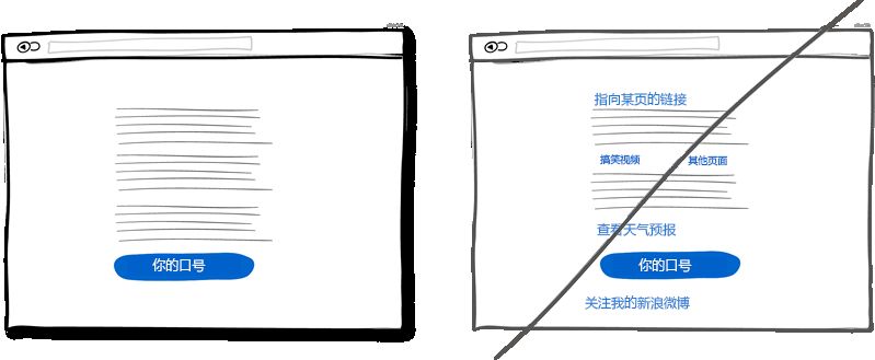 為了滿足各式用戶的需求,在頁(yè)面上放些鏈接鏈到這里鏈到那里是常見的做法。如果你的主要目的是想讓用戶點(diǎn)擊頁(yè)面最后那個(gè)下載按扭什么的話,就需要三思了。因?yàn)橛脩艨赡茳c(diǎn)擊了其他鏈接離開頁(yè)面了。所以你需要注意頁(yè)面的鏈接數(shù)量,最好將用于導(dǎo)航與用于操作的鏈接用樣式區(qū)分開。盡量移除頁(yè)面不需要的鏈接會(huì)讓用戶點(diǎn)擊到你的功能按鈕。