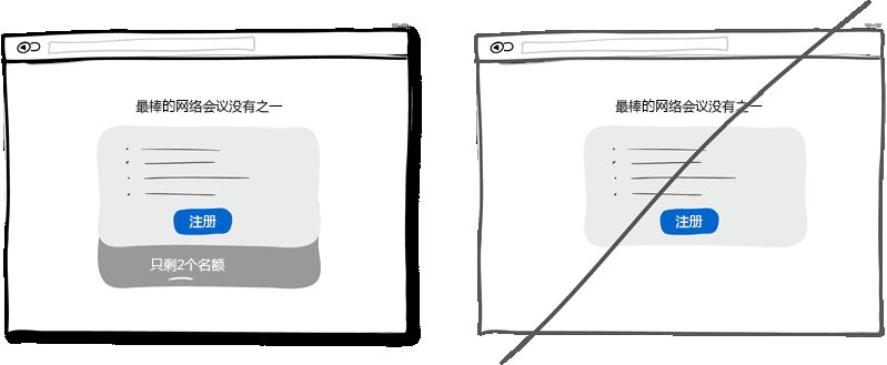 適當(dāng)?shù)木o迫感是個(gè)有效的戰(zhàn)術(shù)可以讓用戶立即做出決定而不是等上個(gè)十天半個(gè)月。重要的是這種戰(zhàn)術(shù)屢試不爽,因?yàn)樗凳玖速Y源的緊缺或者活動(dòng)的時(shí)間有限,今天可以買,但明天可能就無(wú)法這么低價(jià)了。另一方面,這一戰(zhàn)術(shù)也讓用戶感到會(huì)錯(cuò)失一次大好的機(jī)會(huì),再一次,應(yīng)用了人們害怕失去的本性。當(dāng)然,這種戰(zhàn)術(shù)會(huì)被一些人嗤之以鼻,認(rèn)為是不耿直的做法。不過(guò),這只是種戰(zhàn)術(shù)而以,并且在保持合法性的前提下應(yīng)用也無(wú)傷大雅。所以請(qǐng)不要為了營(yíng)銷而在界面上制造緊迫的假象。