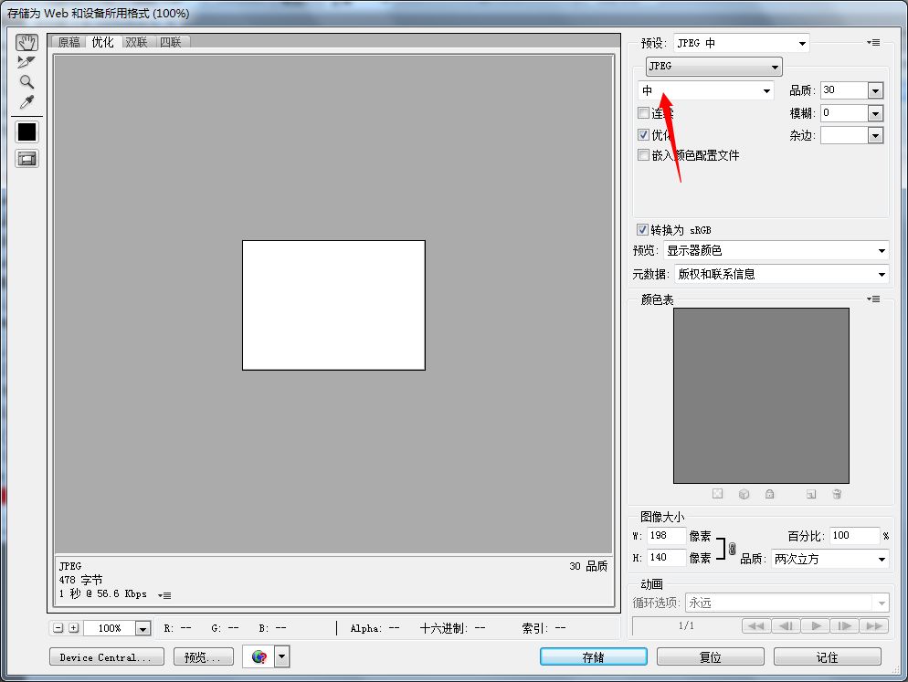 第二步:根據(jù)你的需求選擇格式和圖片的質(zhì)量,如果圖片不需要描述非常細(xì)節(jié),可以選擇中,如果有特殊需求,選擇高也沒有多大影響。然后點擊【存儲】即可。