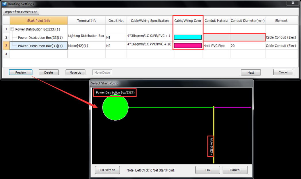 MEP电相关专业中,桥架及配电回路错综复杂,【一键布线】功能中,可以快速根据回路起终点,完成全楼层的配线回路布置。