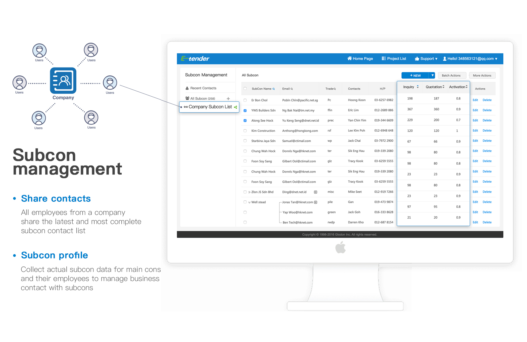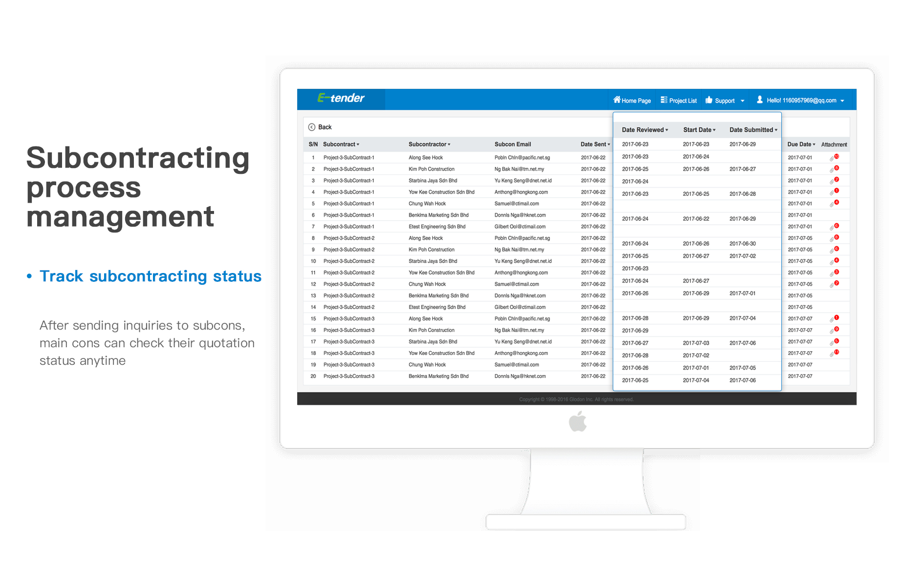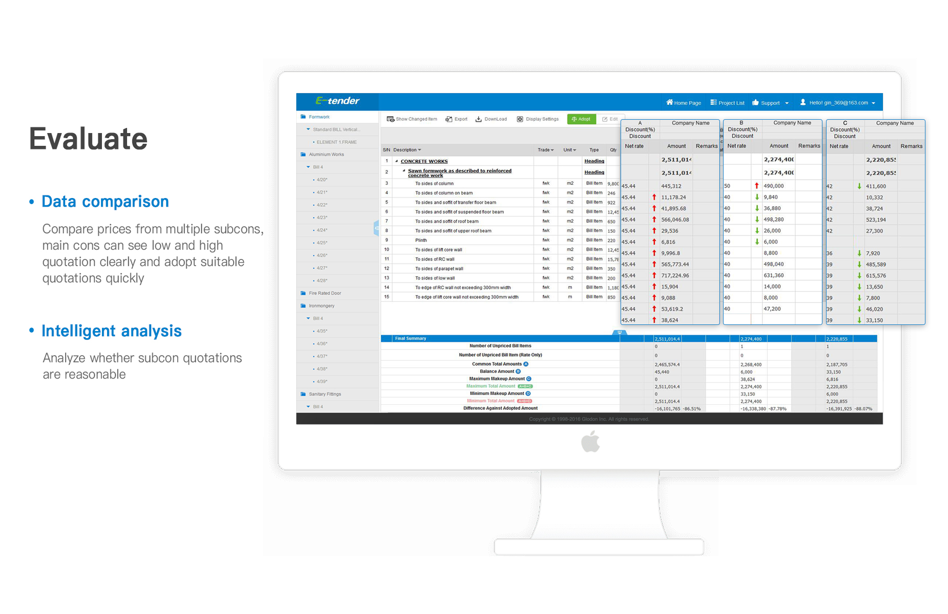 E-tender是一个处理建筑项目分包工程的询价系统,能够有效的降低分包询价成本,使分包询价过程更加高效、准确和安全。