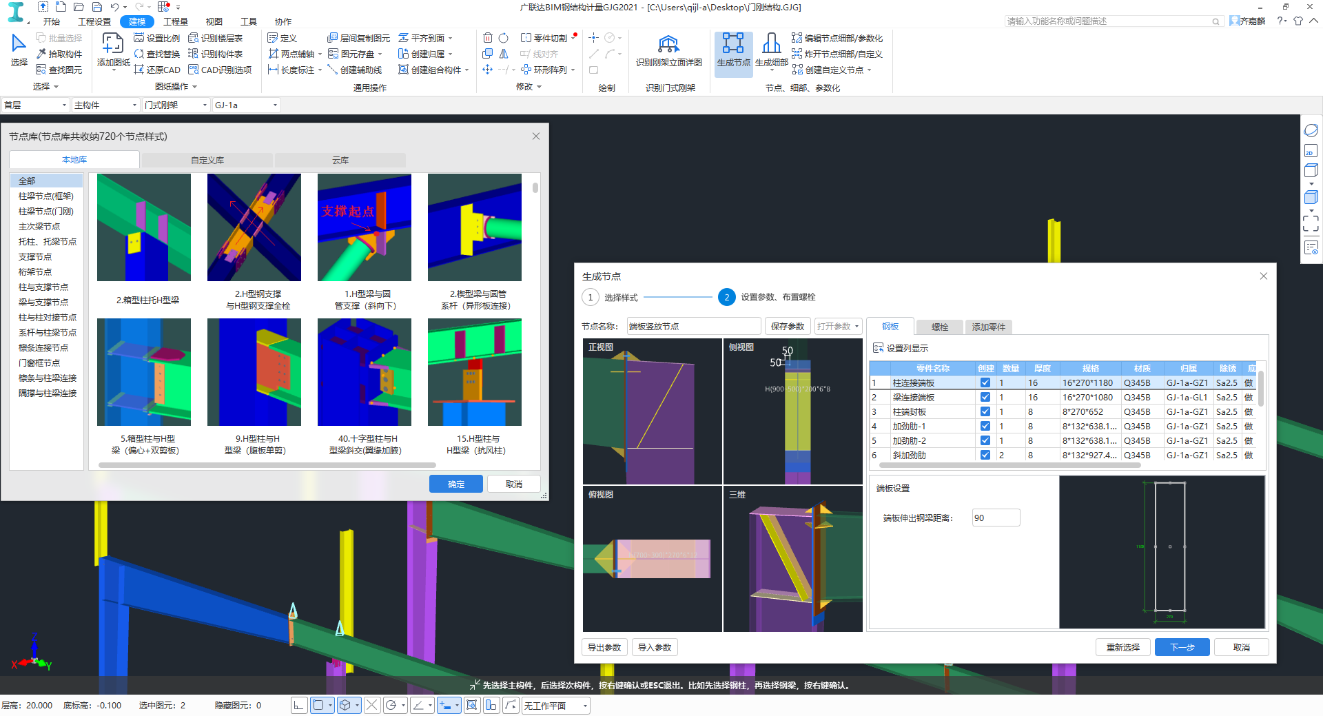 参数化节点 全面精准【节点库,覆盖全面】软件内置上千种节点样式,覆盖门刚、框架、球支座等各类场景,覆盖全面 【参数化节点,智能精准】参数化节点根据连接构件自动匹配,根据连接构件规格自动计算参数,仅需少量即可完成节点设置,智能精准 【批量生成,快速高效】工程内相同位置一键批量生成,快速、高效 |