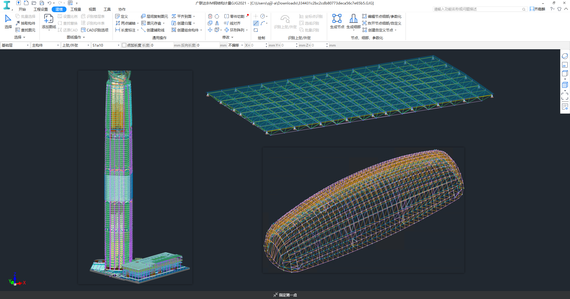 通过提取坐标点表与桁架构件编号图,一键生成异形桁架模型。
