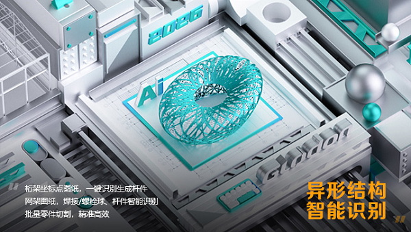 异形结构 智能快速【识别坐标点表,智能高效】杆件坐标点表支持一键提取坐标信息,智能匹配杆件编号图,一键生成异形桁架模型 【网架图识别,快速便捷】螺栓球、焊接球、上/下弦图纸支持提取平面信息后快速建模,高效、便捷 【批量零件切割,计算精准】球节点、杆件连接部位支持批量零件切割,提量更精准 |