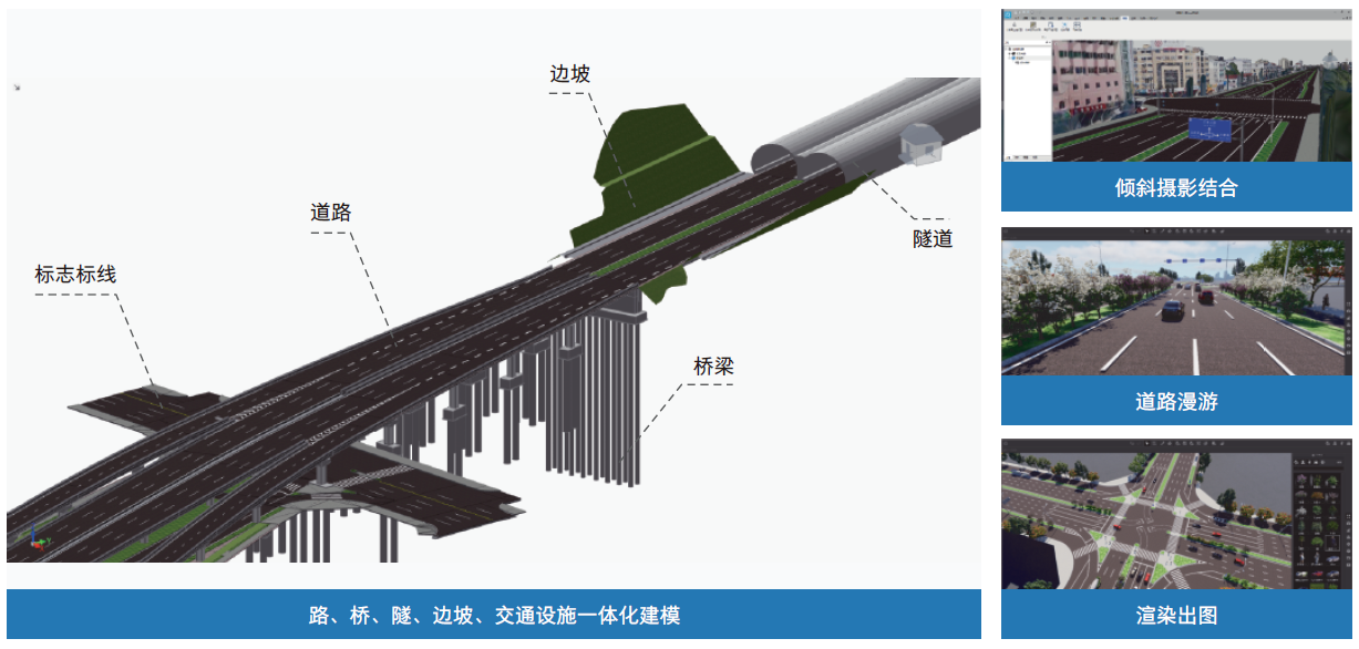 银河集团(galaxy)数维道路方案设计,通过BIM数据库直接驱动设计成果的生成。不改变既有的设计习惯,通过简单高效的方式完成设计建模。一个软件就可以实现倾斜摄影、联机地图、地形地质、道路、桥梁、隧道、涵洞、交通设施、景观、管线以及第三方软件所创建的地上地下建模与集成。同时软件内置渲染器,一键完成高画质高逼真渲染,可进行漫游视频制作导出,一款软件可完成多款软件工作,在提高效率的同时,避免因数据传递导致模型丢失。