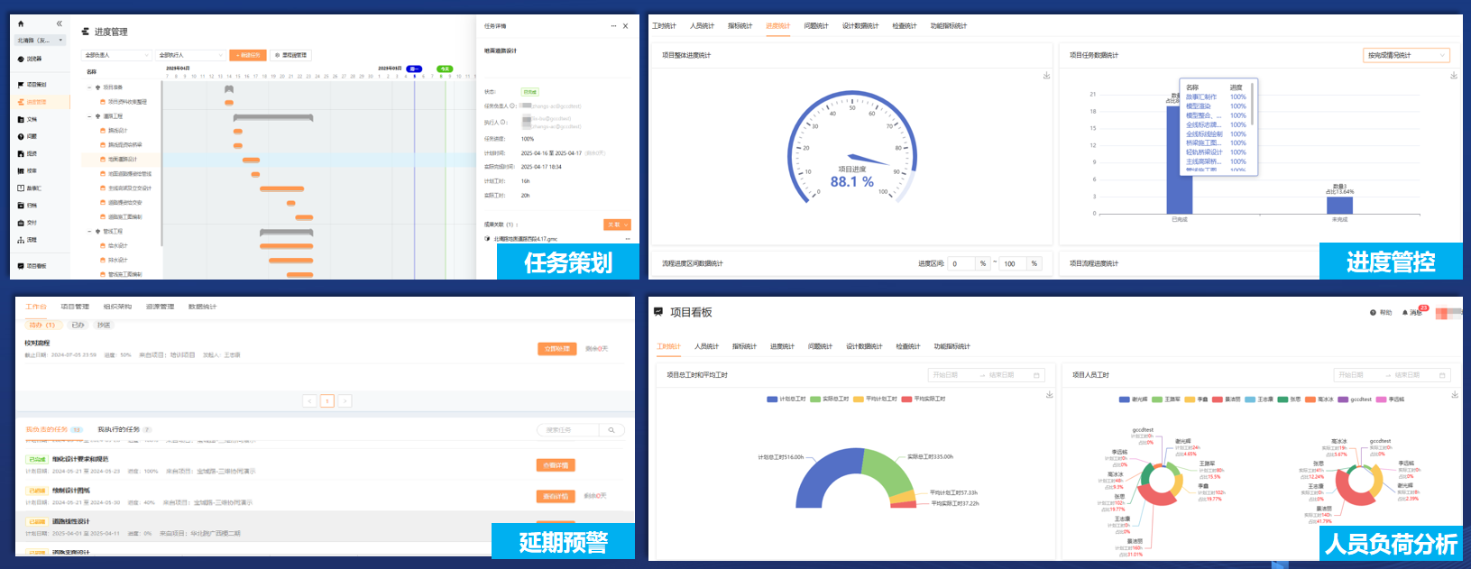 项目策划:项目负责人/专业负责人通过线上的方式组建项目团队,进行任务分配、项目资料管理等,实现项目精细化管理。 基础资料库、构件库:根据项目要求,从构件库、基础资料库中选择所需要的数据,这些数据在设计软件中直接调取使用。 统一软件配置:使用协同软件对道路、桥梁、管线等专业配置进行统一管理(如出图样式、设计规则、规格库等),并同步到设计软件中。
