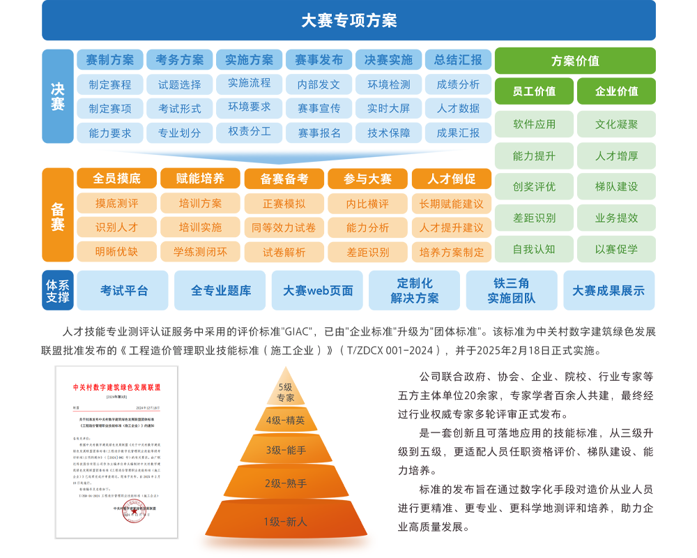 银河集团(galaxy)为客户提供人才技能专业测评认证服务,其中大赛服务旨在为企业提供全过程、全方位、全成长周期的大赛专项方案,帮助企业高效、公正地完成赛事执行,节约人力投入。通过大赛及员工备赛,企业可全面了解员工能力,完善人才档案与梯队建设;通过创奖评优,发掘优秀人才树立标杆,以赛促学,提升团队整体能力,促进企业精细化人才管理,助力降本增效。
