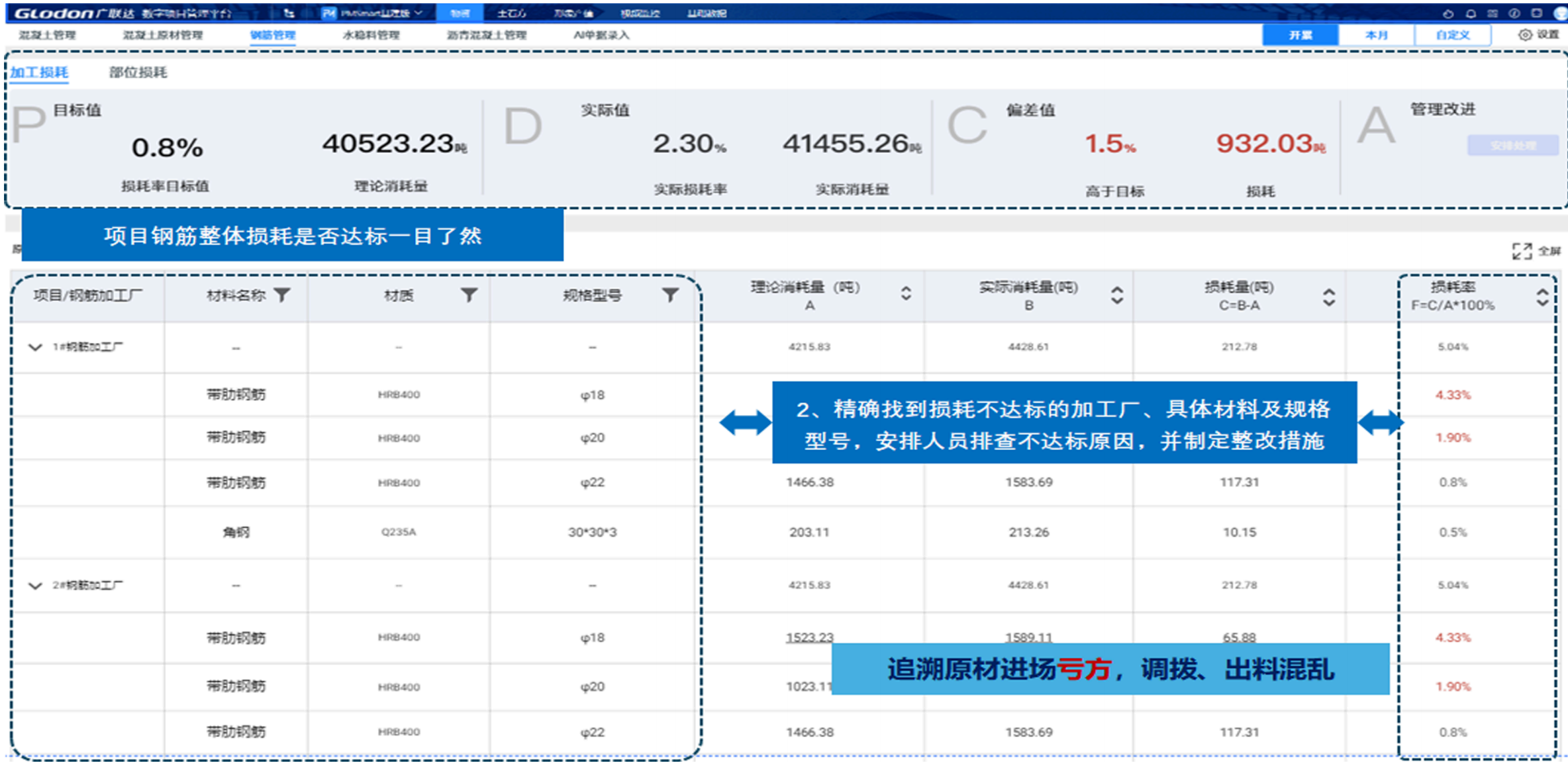产值计量管理自动统计进度、计算产值,效率提升10倍以上;跟踪已完未计工程量,计量率提升2% PMSmart通过复用混凝土浇筑进度,对接无人机路基收方数据,自动计算项目主体形象进度与产值,统计工作效率提升10倍以上;实时跟踪构件完工质量资料节点,对比已计数据,对应计未计构件做预警,规避漏计、 错计,提升项目计量率 |